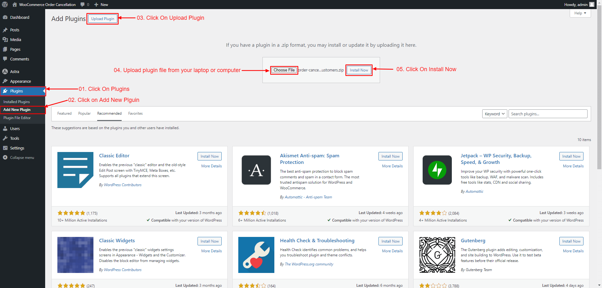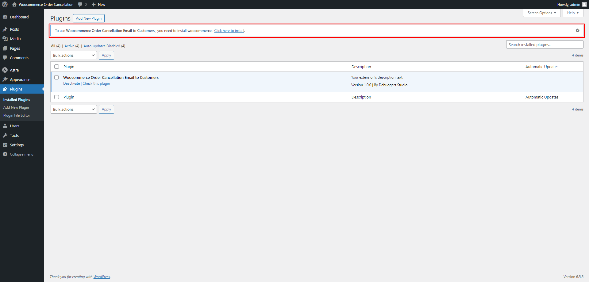 To assist you, the Woocommerce Order Cancellation Email to Customers team has implemented a pop-up message on your screen. If you have installed the plugin, the pop-up message will appear, prompting you to install and activate WooCommerce